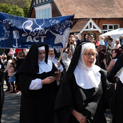 The parade starts at 11:30am from the United Reformed Church, Woodmansterne Lane, Banstead. The parade features the May Queen, her attendants, local school children, and community groups. The parade travels along the High Street up to the roundabout at Zizzi’s and then back into the Orchard of All Saint’s Church.